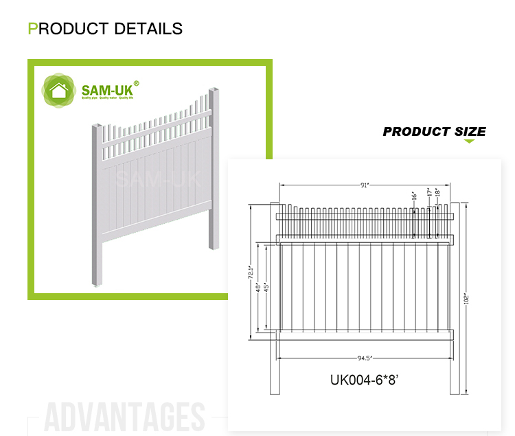 Gute Qualität für Vinylzaun (Unsere Produkte Verwenden Sie Komponenten, die ASTM F964 erfüllen und D1748-Spezifikation und unterstützt durch unsere eingeschränkte lebenslange Garantie). | |