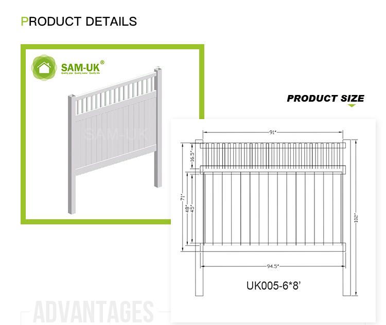 Gute Qualität für Vinylzaun (Unsere Produkte Verwenden Sie Komponenten, die ASTM F964 erfüllen und D1748-Spezifikation und unterstützt durch unsere eingeschränkte lebenslange Garantie). | |