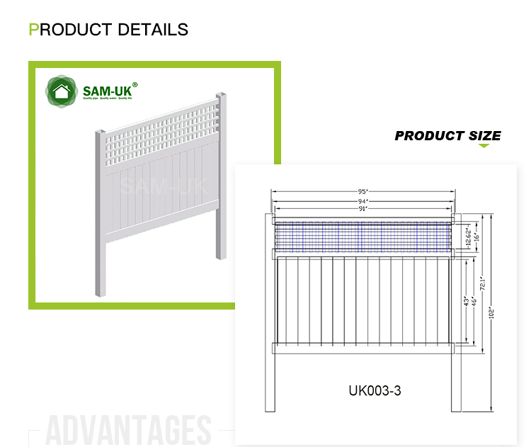 Gute Qualität für Vinylzaun (Unsere Produkte Verwenden Sie Komponenten, die ASTM F964 erfüllen und D1748-Spezifikation und unterstützt durch unsere eingeschränkte lebenslange Garantie). | |